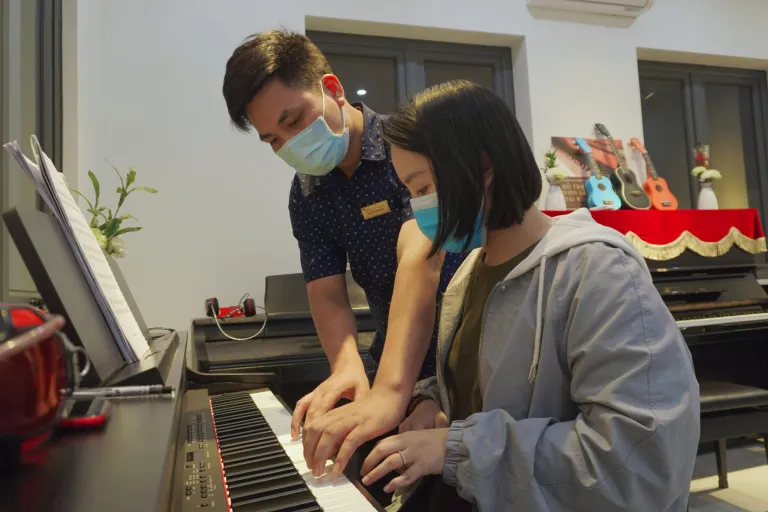 Với một cơ sở vật chất hiện đại ngày một hoàn thiện cùng sự chân thành, chuyên nghiệp, tận tâm trong cách giảng dạy, chúng tôi luôn sẵn lòng giúp bạn tư tin hoàn thành bản nhạc yêu thích nhất theo phong cách riêng của mình, kể một câu chuyện về cuộc đời mình trên Piano một cách toả sáng nhất.